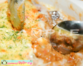 | ラザニアを取り分けるシーンです。 色合いやスプーンの位置を変えて、雰囲気の違う2カットを撮影してみました。 |